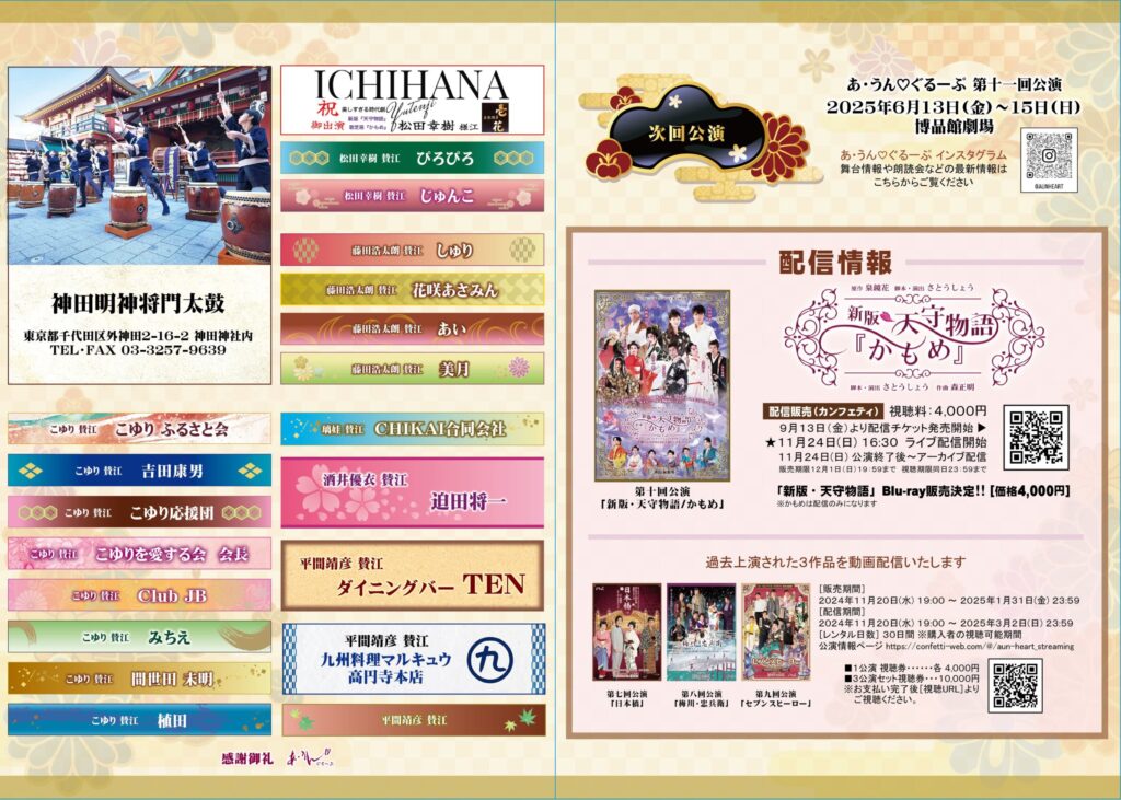 お知らせ 「新版・天守物語」「かもめ」ご協賛いただいた皆様 2024年12月1日 2024年12月1日 aun FacebookTwitterはてブLINEPocketFeedly ありがとうございました。心から感謝いたします パンフレットに掲載できなかった方は申し訳ありませんでした。こちらでご報告させていただきます ありがとうございました。パンフレットに掲載させていただいたものです FacebookTwitterはてブLINEPocketFeedly